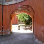 L’arco del Meloncello come appariva prima dell’innalzamento dell’arco stesso, fatto per permettere il passaggio del treno a vapore che andava a Casalecchio di Reno (fotografia di Pietro Poppi)