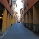 Dall’ angolo delle Case nuove di S. Martino fino all’ ultimo pilastro della casa già dei notari, esclusa la larghezza della via Torresotto Piella e della via del Giardino. si disse Fossato anticamente, perchè lungo questa strada costeggiavano le fosse del se-‘ condo recinto, le quali dal voltone del Poggiale fino alle Case Nuove di S. Martino servono in oggi di alveo al canale di Reno, ossia dei Molini. Bertiera ora detta coperta, per esservi portici da una parte, è ncordata li 25 novembre 1263 da un rogito di Simoncello di Dondidio, chimandola Bertiera della parrocchia di S. Tommaso del Mercato. Alcuni l’ hanno chiamata in generale contrada Brettona, come da un rogito delli 18 maggio 1538, altri Brettiera, e qualcuno Bretta. pretendendosi che il nome lo abbia avuto da una famiglia delli Beretta che vi abitava, ma tale supposizione è totalmente priva di fondamento.